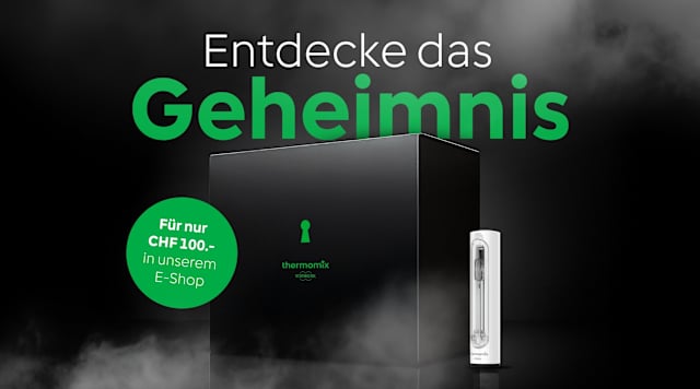 ​Exklusive Produkte für deinen Thermomix® TM6 warten in der Mystery Box!​ Im Inneren verbirgt sich unser grosses Highlight: der Thermomix® Sensor im Wert von CHF 170.- , für perfektes Garen auf den Punkt. ​Jede Mystery Box für nur CHF 100.- hat einen Gesamtwert von mindestens CHF 230.-!