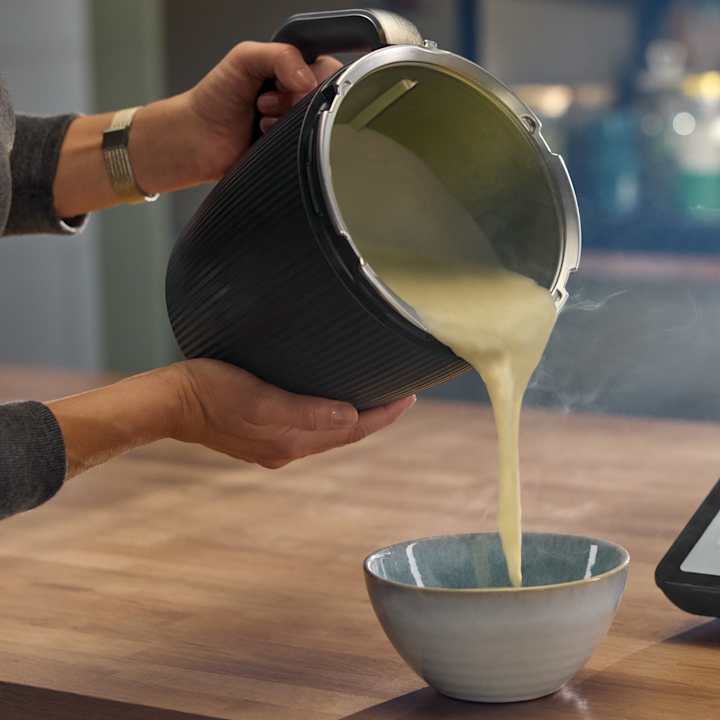 Für Rezepte, die Ei zum Andicken verwenden, Temperatur auf 80ºC einstellen – Bei diesen Rezepten werden Eier oder Eigelb als Verdickungsmittel verwendet. Darunter fallen heisse emulgierte Saucen, Desserts oder Aufstriche. Probiere die Sauce Hollandaise oder Béarnaise oder die Zabaglione mit Orangenlikör.