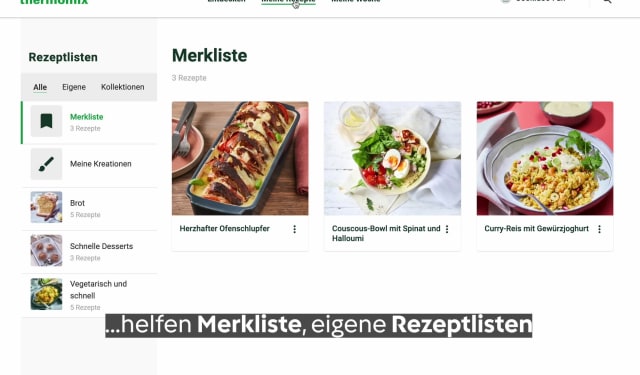 Wo ist das Rezept, das ich gestern gesehen habe? Was hatte ich gekocht, als Tante Lisa zu Besuch war? Was mache ich zum nächsten Kindergeburtstag? Bei Tausenden Rezepten auf Cookidoo® fällt es oft schwer, sich zu entscheiden. Mit Merkliste, eigenen Rezeptlisten und dem Cookidoo® Wochenplaner hast du deine Lieblingsrezepte immer griffbereit, wenn du sie brauchst.