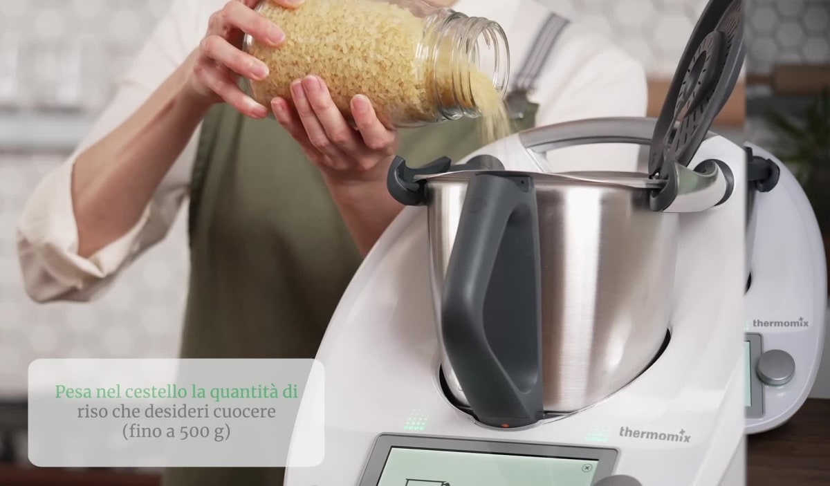 La modalità Cuoci riso fa più che solo riso! Con questa modalità puoi cuocere anche cereali come miglio, bulgur o farro. Metti il cereale che preferisci nel boccale con acqua e condimento, seleziona la modalità e ruota la manopola. La temperatura e il tempo di cottura vengono automaticamente controllati dal Thermomix®.